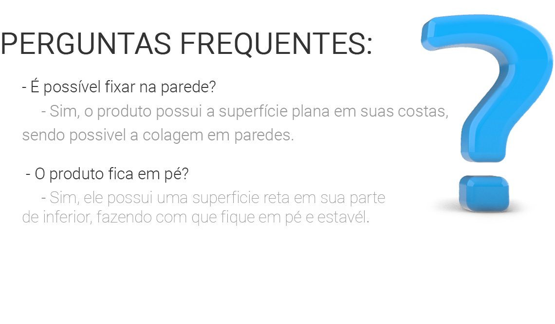 Pode ser apoiado em mesas, prateleiras e até colado na parede com fita dupla face (incluso)