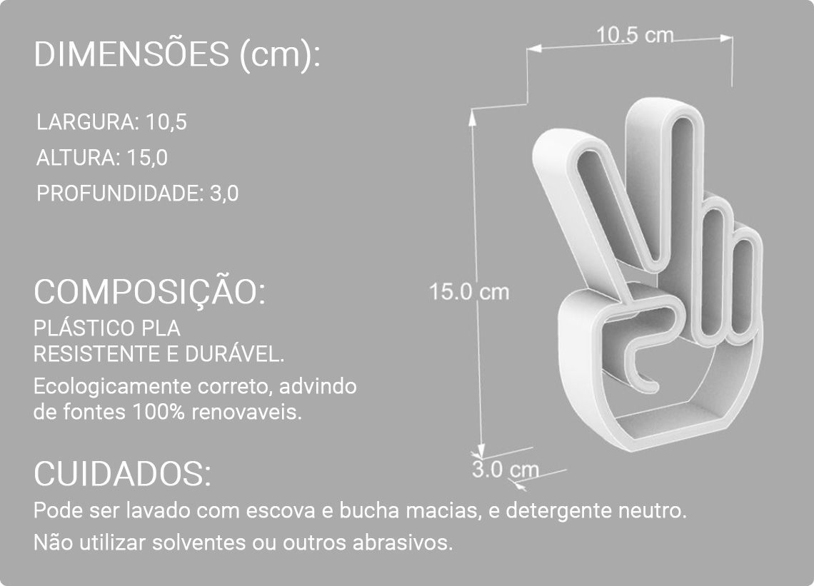 O produto também é indicado para todos os locais de trabalhos, clinicas, bares, restaurantes, etc, pois remete ao sinal de paz, amor e vitória.