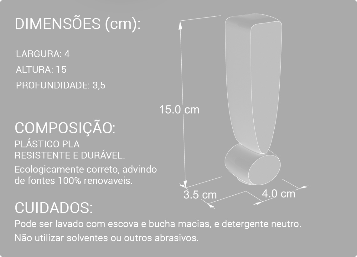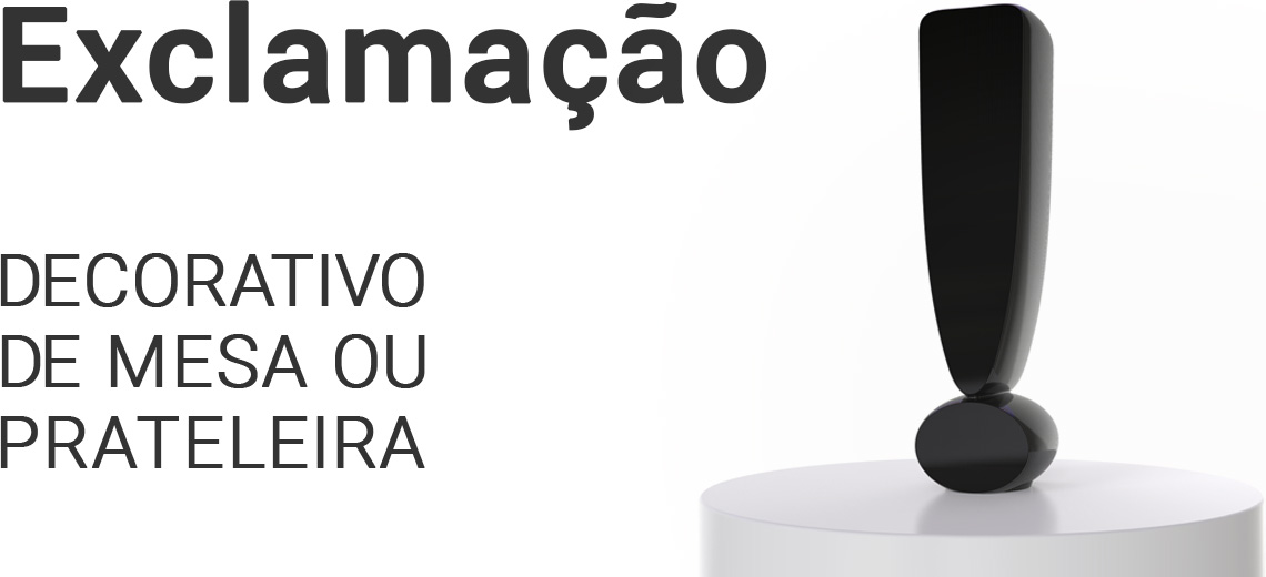 PONTO DE EXCLAMAÇÃO DECORATIVO DE MESA E PRATELEIRAPRODUTO EM ESTOQUE. ENVIO IMEDIATO.Fabricado com material plástico ecologicamente correto, com alta qualidade e acabamento. - Projetado para ficar estável em pé em mesas e prateleiras. Não cai facilmente!  - Pode ser fixado em paredes e painéis, inclusive com fita com fita dupla-face (não inclusa) - Fácil limpeza! Pode ser lavado com bucha delicada, escova de cerdas macias e detergente neutro.  As medidas podem ser verificadas na desenho técnico da última imagem.(4 cm L x 15 cm A x 3,5 cm P)Decora qualquer ambiente e é perfeito para quem faz lives, podcasts, etc.Agradecemos pela compra!Sculpy - Printing Lifestyle